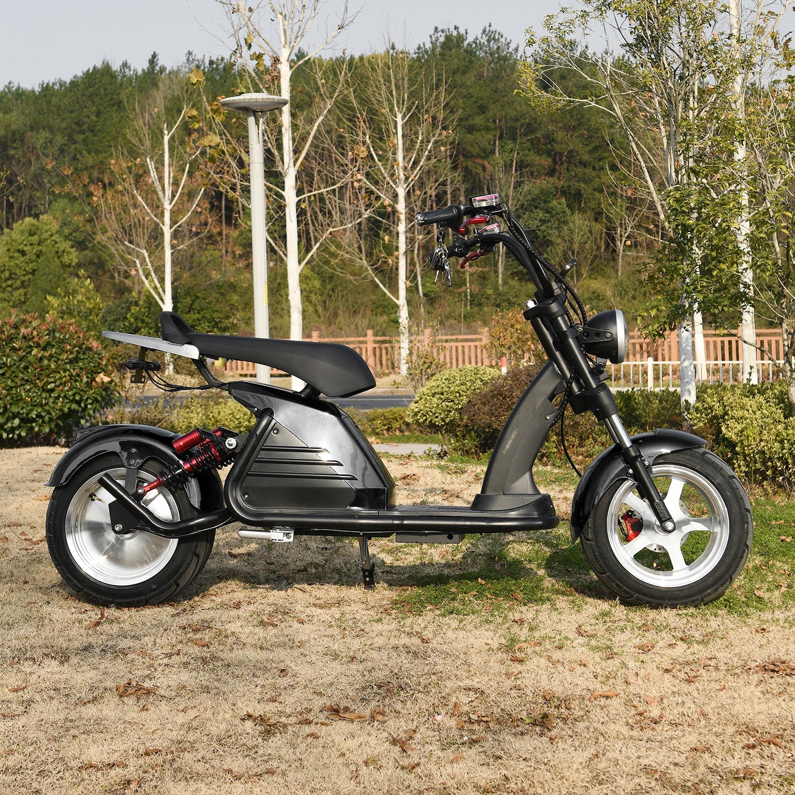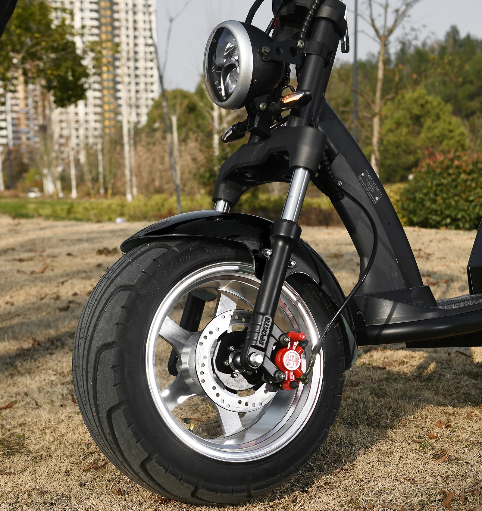 eHoodax M6 has a maximum speed of 60-70KM/H, a charging range of 50-70 kilometers; a 3000W motor 60V30AH lithium battery, a large 18-inch fat tire, and a maximum load of 200KG. Hydraulic disc brake, CE EU certification.